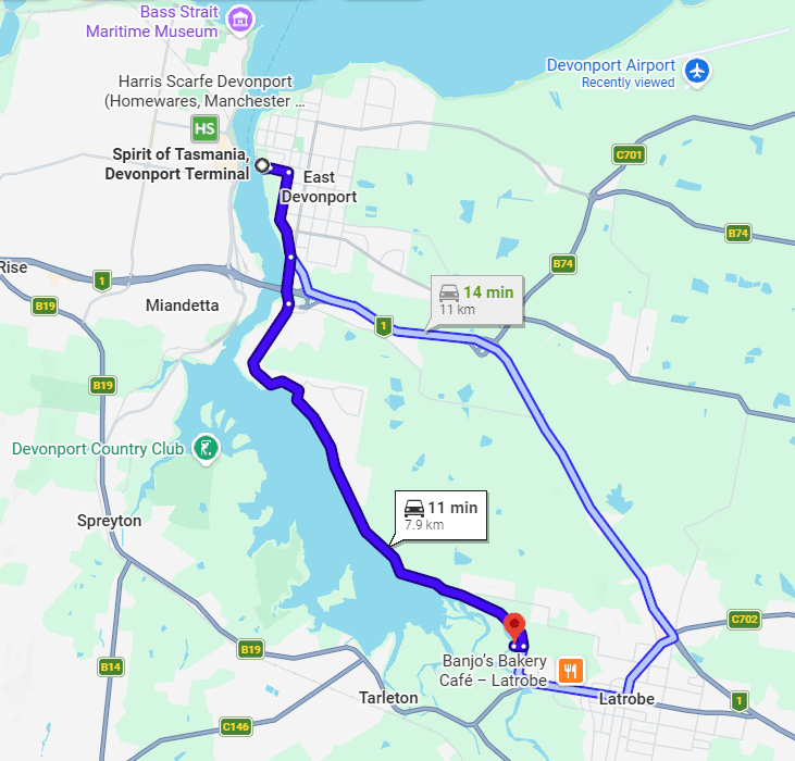 Devonport Airport to our start line (click on map)